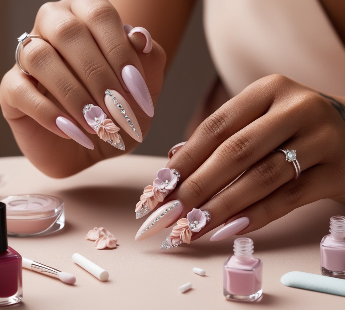 Manicure con diseño 3D, masaje, pedicure y gel